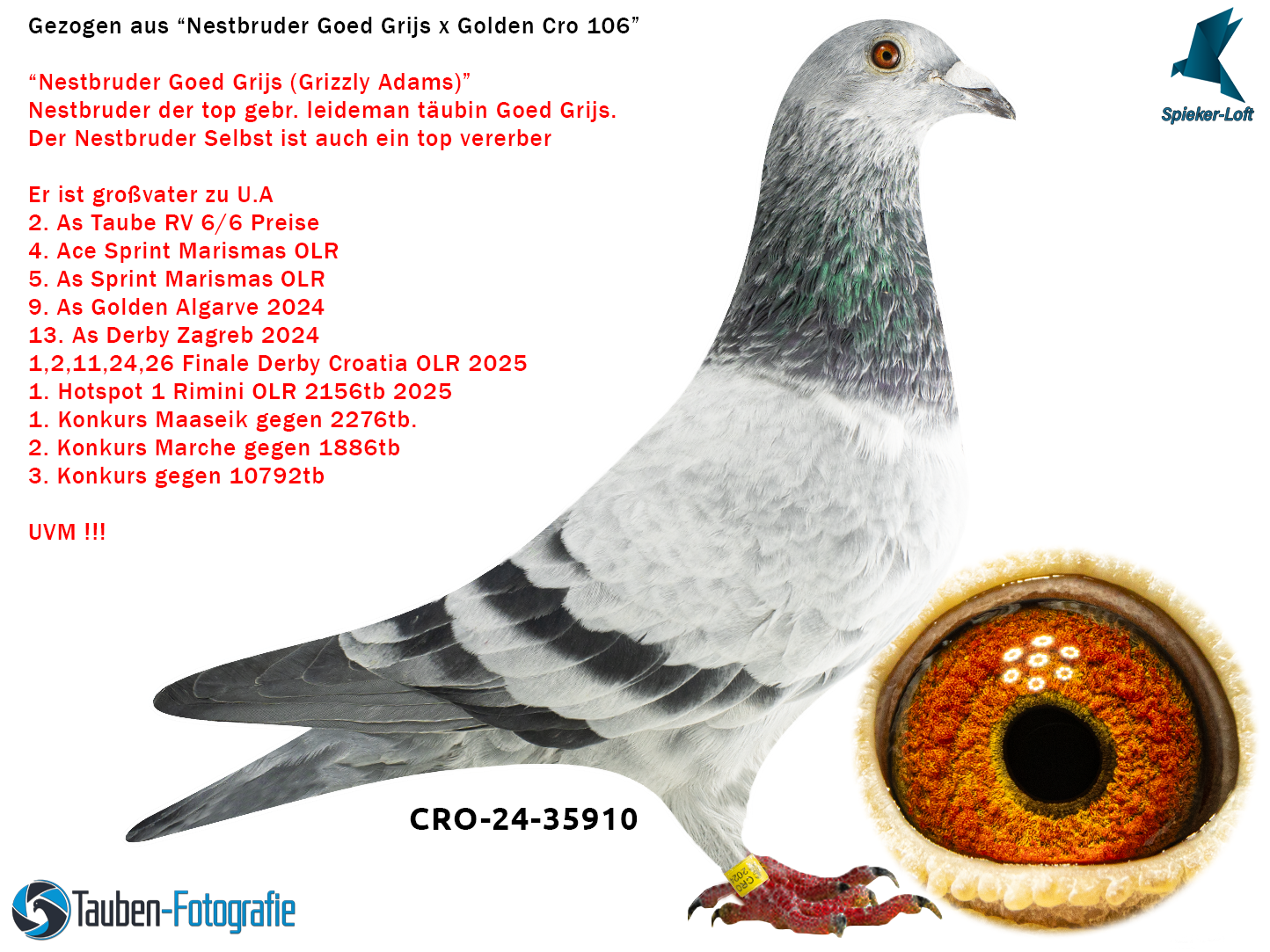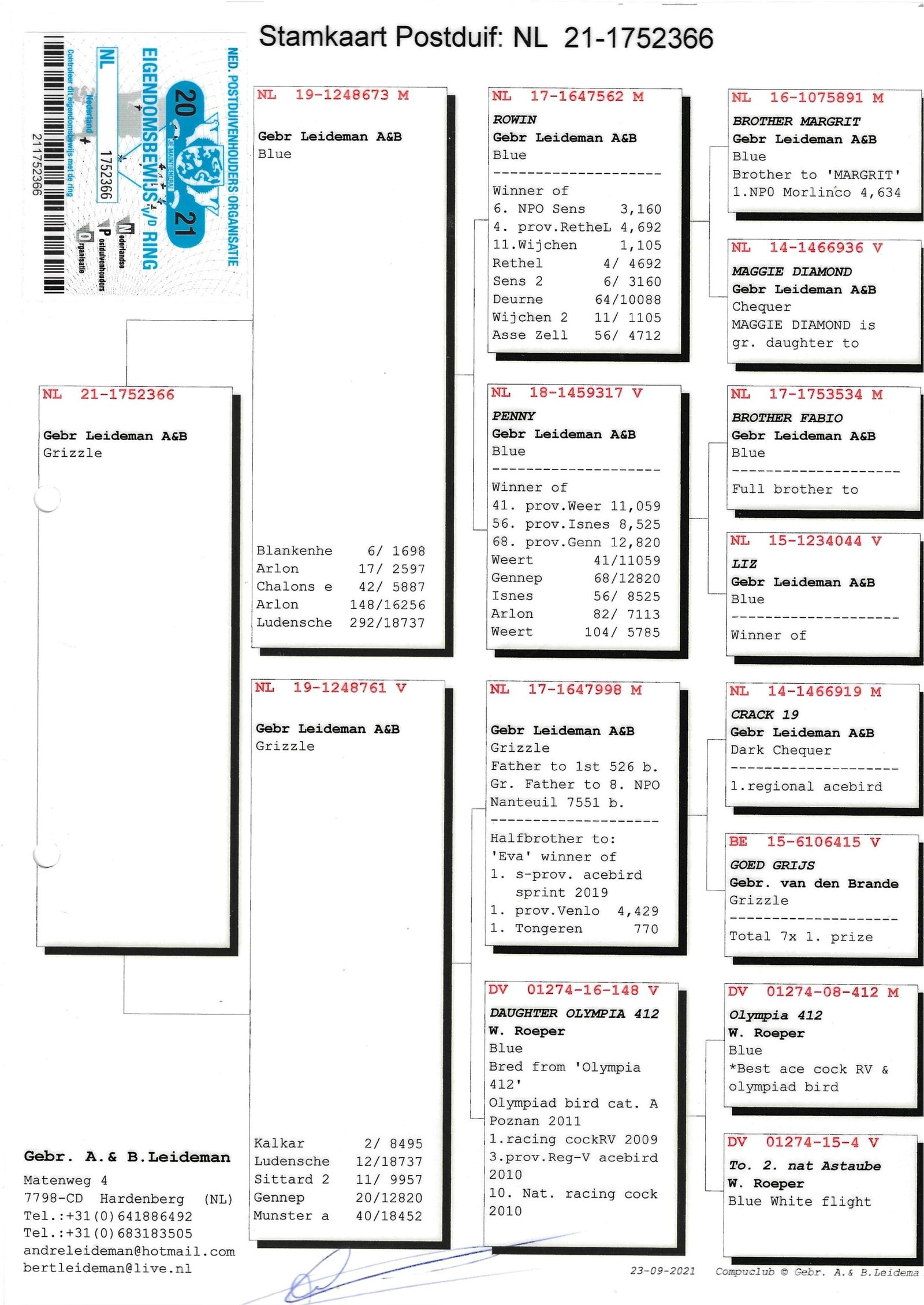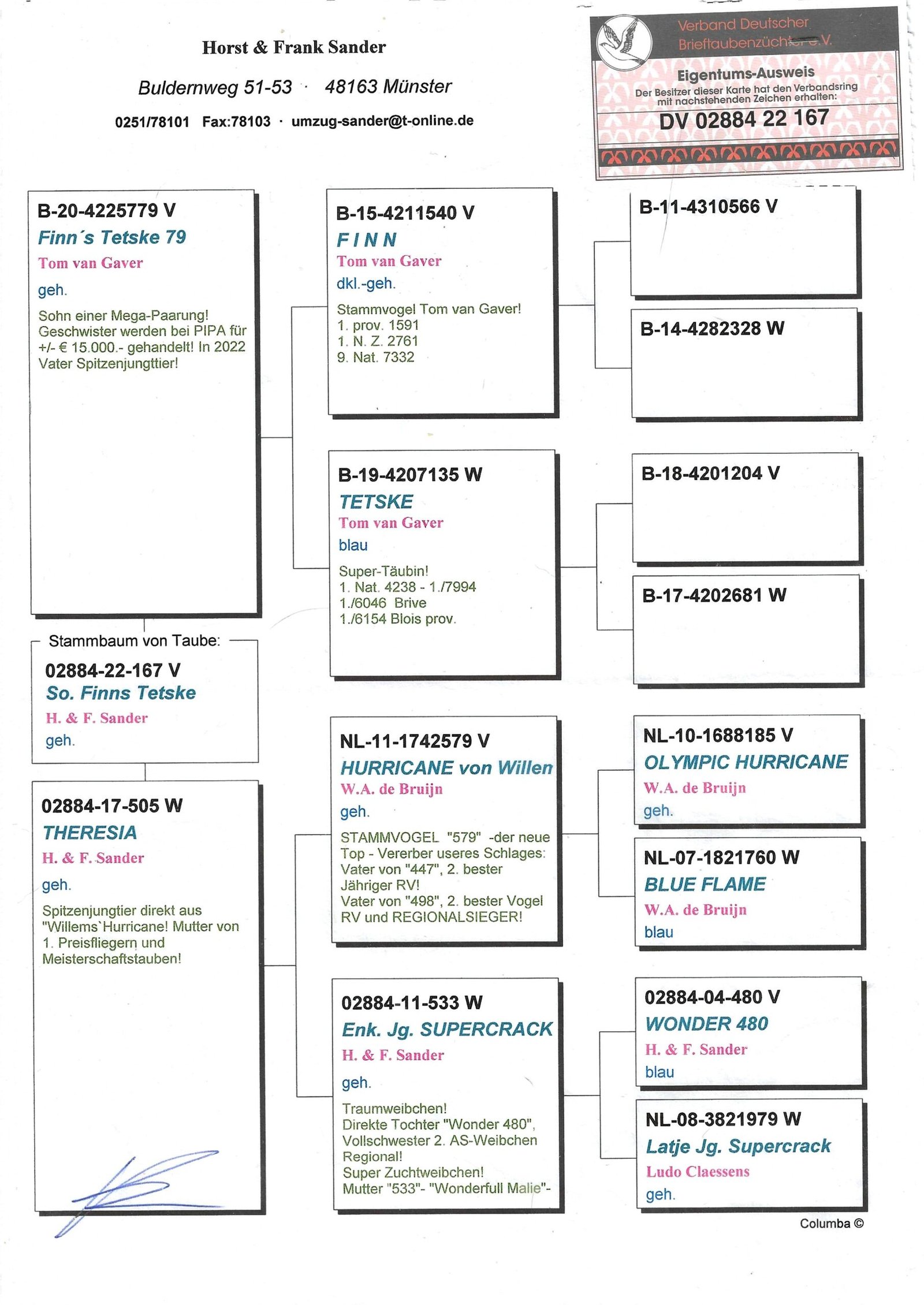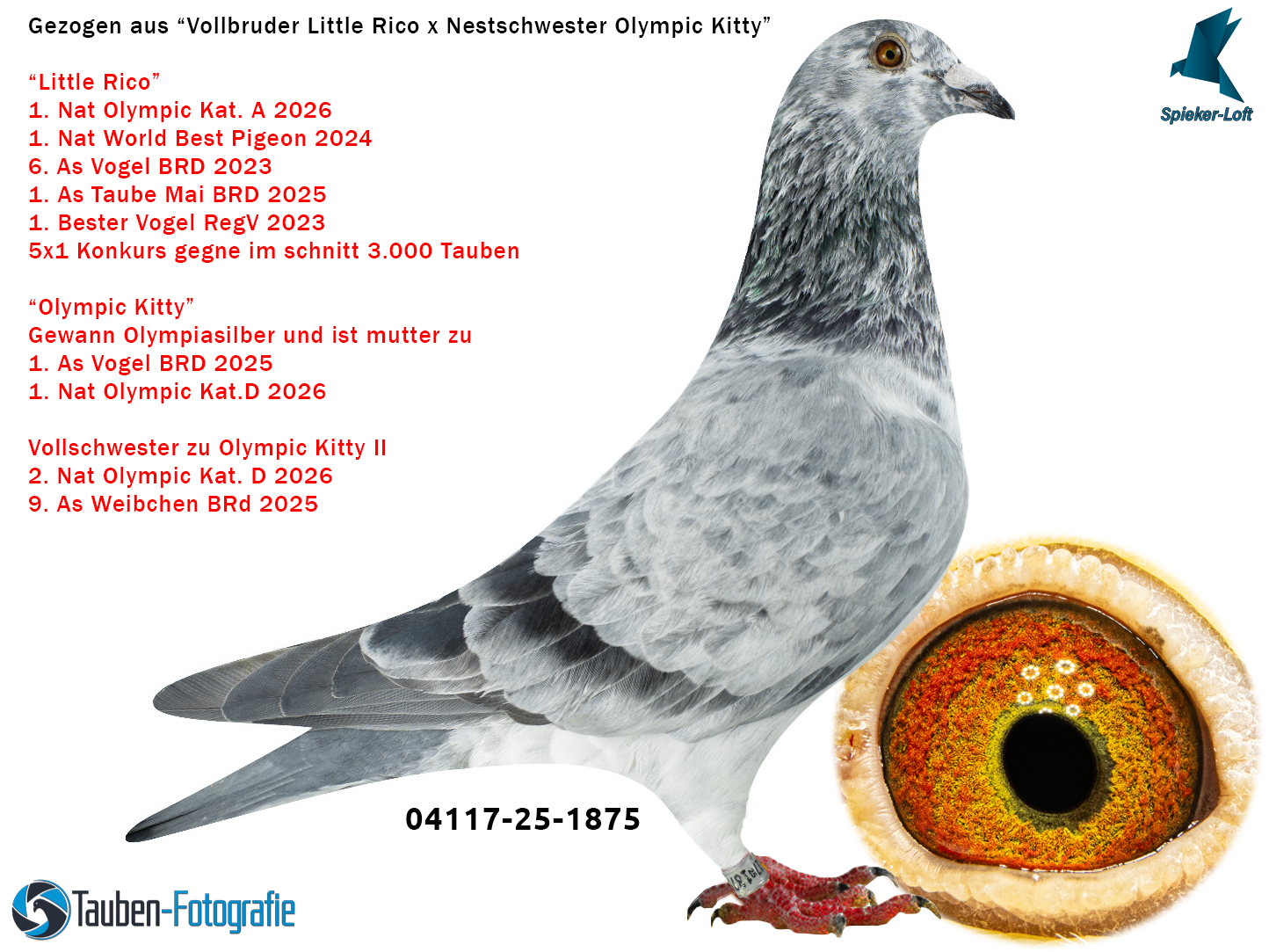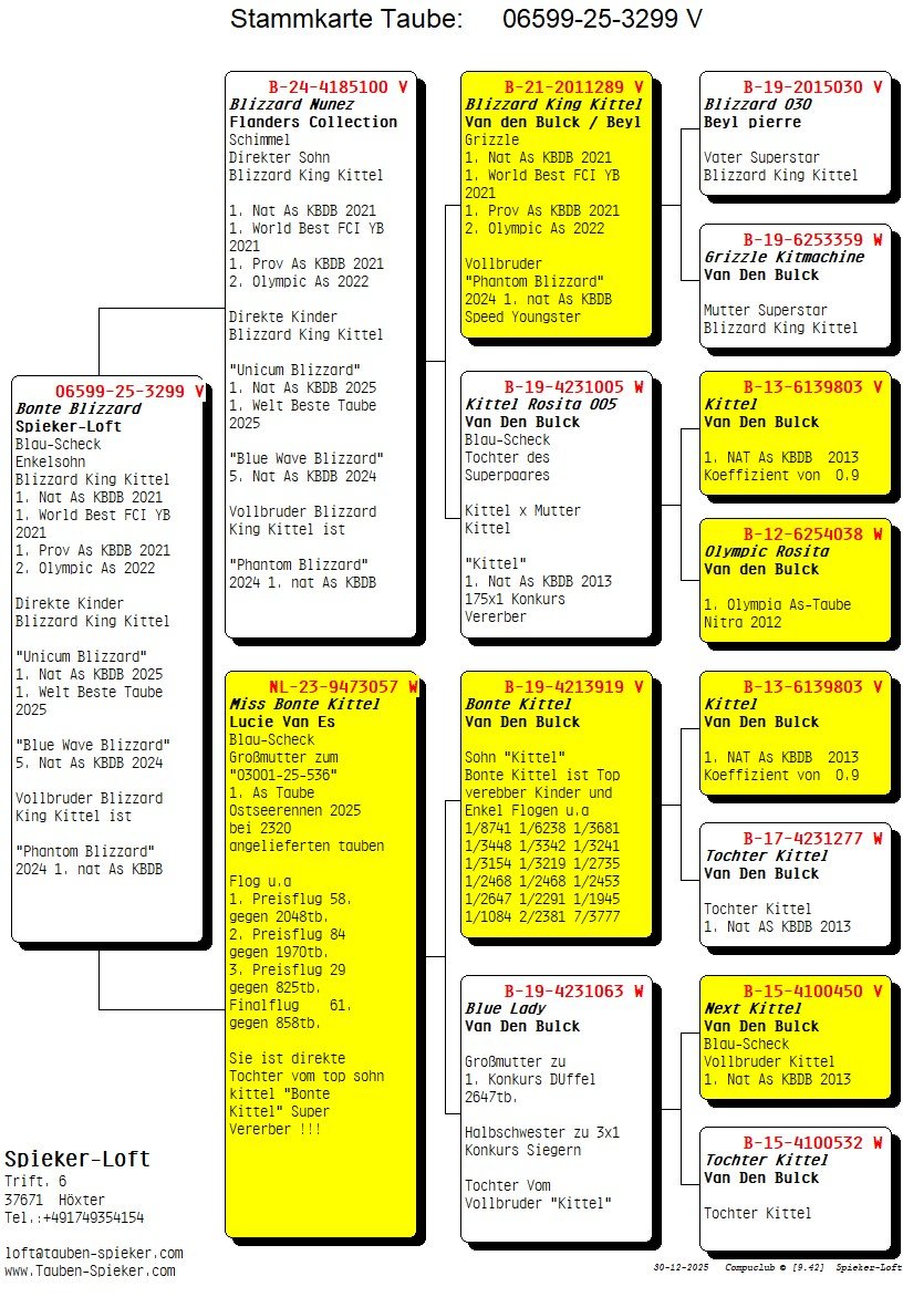 Zucht-Vögel B-24-4185100„Sohn Blizzard King Kittel“AbstammungB-23-4181680„So. Victory BK“AbstammungB-22-2124344„Sohn Olympic Rico“Abstammung08600-23-345„Sohn Grizzle“AbstammungNL-21-1752366„Sohn Connor“Abstammung03294-22-810„Enkel Goed Grijs“Abstammung07854-16-506„4 As-V Westfalens“AbstammungB-23-3016434„Blizzard 434“AbstammungB-21-6049495„Capo“AbstammungB-21-2140211„Sohn Olympic Rico“Abstammung04117-25-1906„Halb Br. Little Rico“AbstammungB-21-6208992„Enkel Porsche 911“Abstammung05808-23-5„Sohn Joker“AbstammungB-19-5010175„Sohn Br. Whiteman“Abstammung04972-13-690„Sohn B-043“Abstammung01777-20-740„Sohn Dirk“AbstammungB-20-6033106„Enkel Pitbull“AbstammungPT-21-1265001„Enkel BK“Abstammung06599-25-3418„Little Blizzard“Abstammung02884-22-167„Enkel Finn Teske“AbstammungNL-20-1179137„Sohn Diamonds Girl“AbstammungCRO-24-910„So. Nestbr Goed Grijs“AbstammungB-17-2140561„Sohn Yvan“Abstammung04117-25-1875„So. Br. Little Rico“Abstammung06599-25-3299„Enkel Blizzard“Abstammung