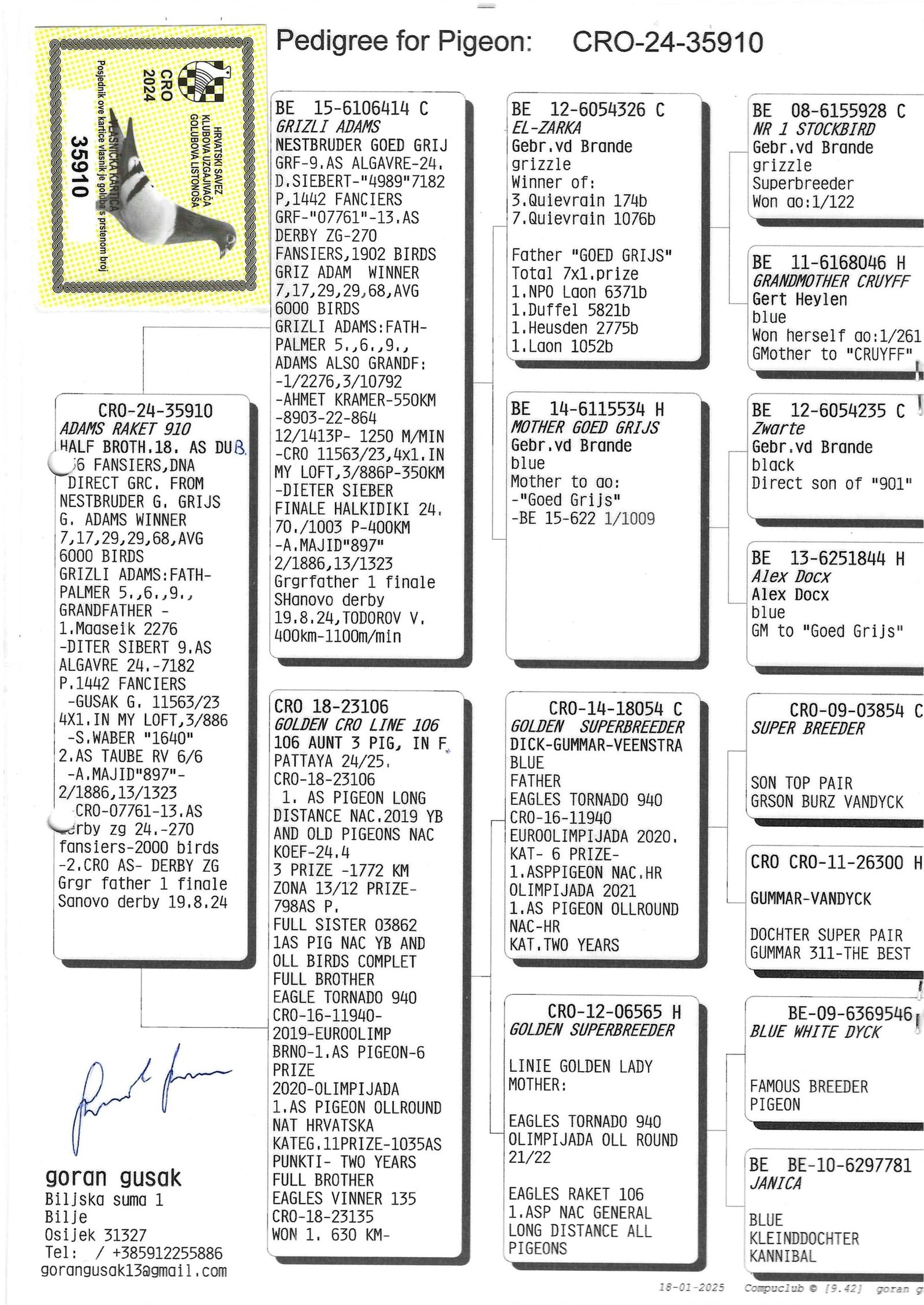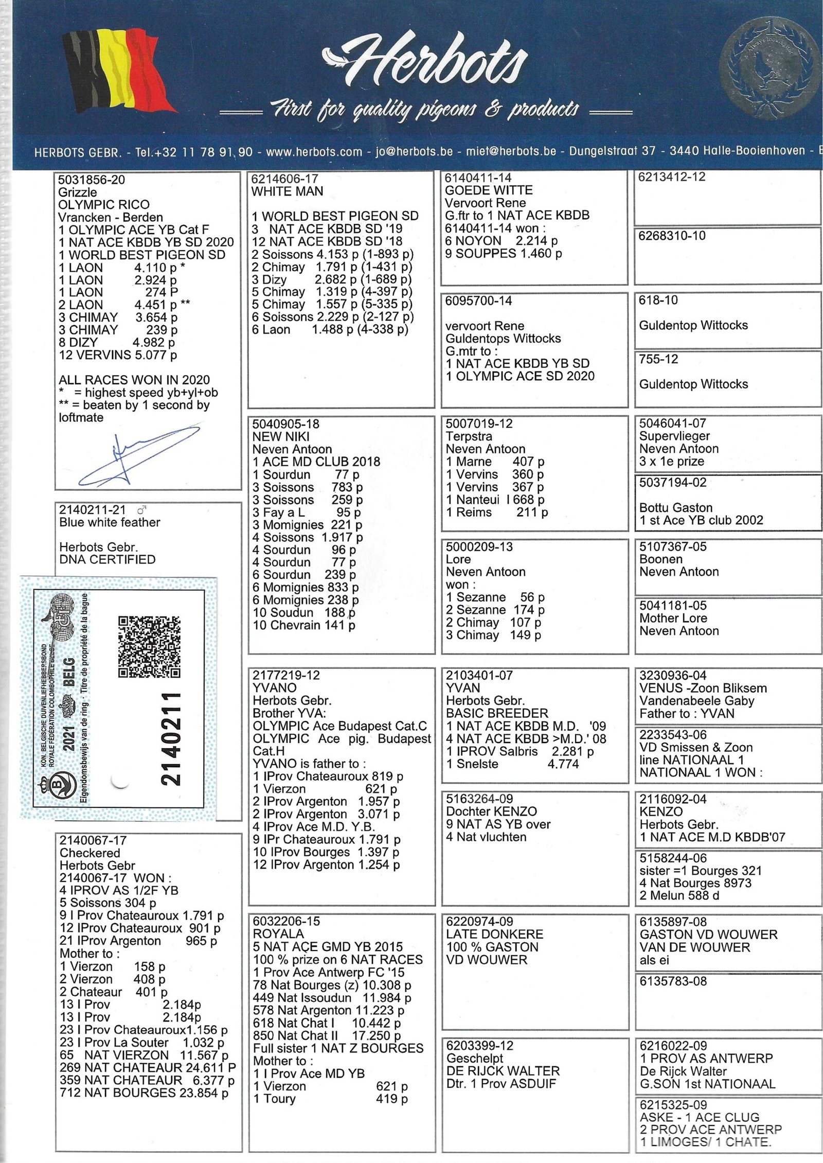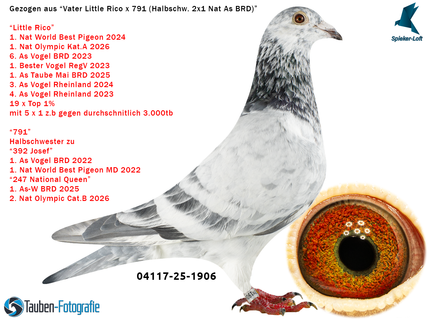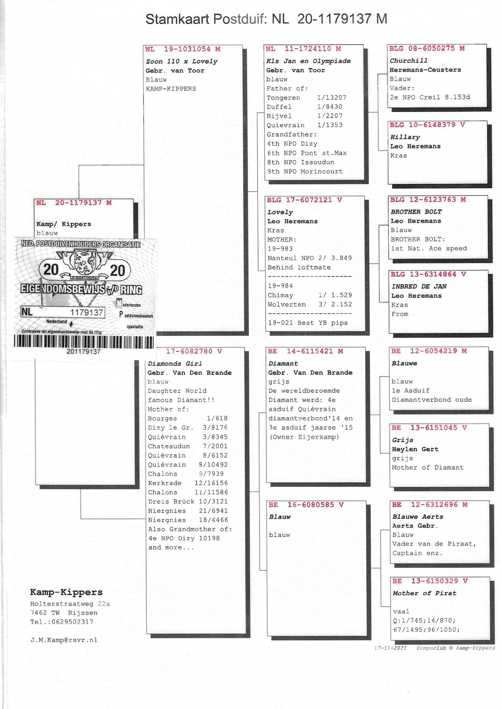 Zucht-Vögel B-24-4185100„Sohn Blizzard King Kittel“AbstammungB-23-4181680„So. Victory BK“AbstammungB-22-2124344„Sohn Olympic Rico“Abstammung08600-23-345„Sohn Grizzle“AbstammungNL-21-1752366„Sohn Connor“Abstammung03294-22-810„Enkel Goed Grijs“Abstammung07854-16-506„4 As-V Westfalens“AbstammungB-23-3016434„Blizzard 434“AbstammungB-21-6049495„Capo“AbstammungB-21-2140211„Sohn Olympic Rico“Abstammung04117-25-1906„Halb Br. Little Rico“AbstammungB-21-6208992„Enkel Porsche 911“Abstammung05808-23-5„Sohn Joker“AbstammungB-19-5010175„Sohn Br. Whiteman“Abstammung04972-13-690„Sohn B-043“Abstammung01777-20-740„Sohn Dirk“AbstammungB-20-6033106„Enkel Pitbull“AbstammungPT-21-1265001„Enkel BK“Abstammung06599-25-3418„Little Blizzard“Abstammung02884-22-167„Enkel Finn Teske“AbstammungNL-20-1179137„Sohn Diamonds Girl“AbstammungCRO-24-910„So. Nestbr Goed Grijs“AbstammungB-17-2140561„Sohn Yvan“Abstammung04117-25-1875„So. Br. Little Rico“Abstammung06599-25-3299„Enkel Blizzard“Abstammung